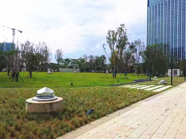 远眺钻石采光器就像一颗颗的砖石镶在绿化带里一样,与绿化带景色相互交映,组成了一道靓丽的风景线!