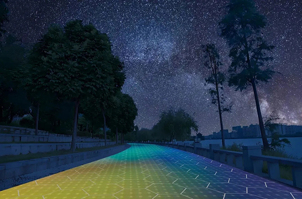 ▲环湖路光能宝盒发电地砖夜间景观亮化效果